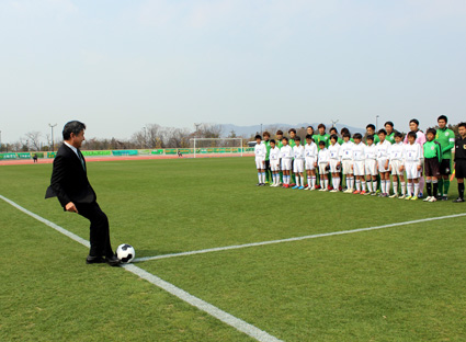 この日は開幕戦ということで、サッカー教室や、ホームタウンの東近江市と草津市のU―12チーム戦、蒲生少年団OB対金田少年団OB戦なども行われた。