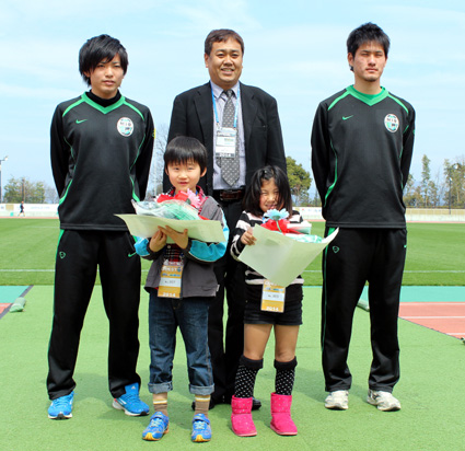 岡本選手自身、今期3ゴール目、三試合連続得点と期待にこたえ、試合後のヒーローインタビューに「後ろの人たちががんばっていてくれたので、どうにか1点取りたかったのでよかった」とチームで決めた決勝ゴールを強調し、「一試合1点をめざしています。得点王をめざしますので、これからも熱い応援をお願いします」と観客席に力強く訴えると、サポーターからは激励の大きな拍手が沸き起こった。