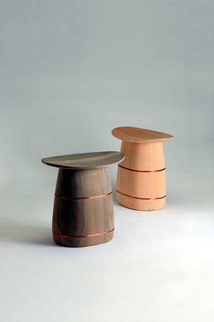 日本の伝統工芸への関心は、国内よりも欧米で高い。このため帰国後、デンマークのデザイナーから助言を受けながら、容器である桶の概念を打ち破り、桶を脚にした「ki-oke stool」などを制作した。