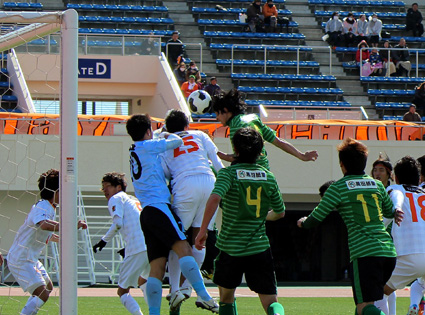 山口戦は、強風注意報が発令されている中でのゲームとなり、強風で思うようにパスが通らない上に、相手の早いパスカットからの巧みなパス回しでの反撃など、終始、山口ペースでの試合展開となり、前半2点と後半2点は、ゴール前にフリーでパスをつながれ、決められた。MIOは風上になった後半の終了間際に、右からのコーナーキックを吉岡勝利選手(背番号6)がヘッドで押し込んで1点をあげて、完封負けだけは免れた。最後まで試合を諦めなかった選手たちの姿勢は、次への期待につながった。(松村好浩)