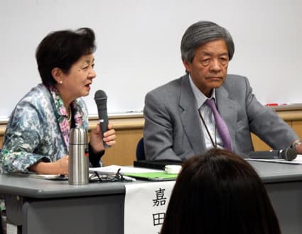 引き続いて嘉田知事との対談では、原発で十分なリスク対策が実施されていない現状を指摘し、「(国内で原発を建設するには安全性は)九九パーセント大丈夫ではダメ、一〇〇パーセント大丈夫だと言わないと(住民の理解を得て)原発を建てられない。だから一〇〇パーセント大丈夫というからには、避難訓練はないという」と問題視した。(高山周治)