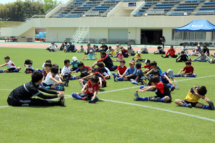 また、この日はゴールデンウィーク特別企画として試合前後には、子どもたちにピッチが開放され、MIOトレーナーによるストレッチ教室や東近江○×クイズ、芝生に親しもうなどのイベントが開かれ、大勢の家族連れがサッカー観戦と共に、楽しい一日をスタジアムで過ごしていた。