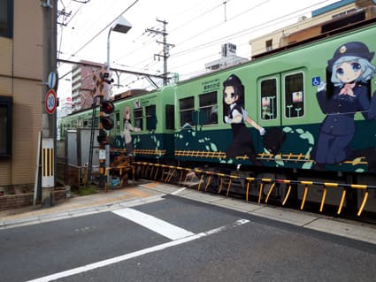 京阪電気鉄道(本社・大阪市)は、全国の鉄道事業者十一社と協力して開催中のスタンプラリー「全国“鉄道むすめ”めぐり3rd」(~九月三十日)をPRするため、十一社のキャラクターをデザインしたラッピング電車を大津線(石山寺~坂本間)で運行している。九月三十日まで。