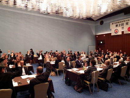 採決は挙手で行われ、賛成六十四人(このうち委任状七人)、反対十一人で、主会場は彦根総合運動場に正式決定した。