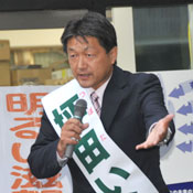 この中で坪田氏は、原発の再稼働、集団的自衛権の行使などの問題、TPPを巡る安倍政権の取り組みに「子どもの未来を奪う」と批判。また、原発を巡っては、三日月氏が昨夏の大飯原発再稼働を認めた民主政権の所属議員だったことから、「(再稼働反対の)世論を代表しているのは私だけ。国へ物言う知事が必要だが、嘉田知事は何も言ってこなかった」と訴えた。