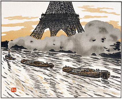 エッフェル塔を中心にしてパリの街並みや自然の景色、労働者や庶民の生活を浮世絵の手法で描き出している。作品全体からは、浮世絵からの色彩や構図、題材、表現方法を学びとれるものがあり、北斎だけでなく広重などの影響を見て取ることができる。