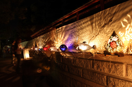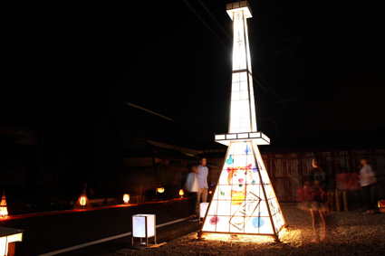 職人技を思わせる芸術的な行灯から、子どもたちによるペットボトルや牛乳パックを利用した行灯など、それぞれに味わいのある作品を、そぞろ歩く見物客は時に足を止め、時にカメラや携帯電話のレンズで楽しんでいた。