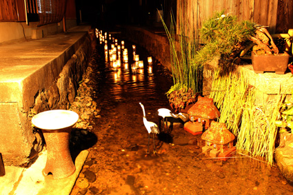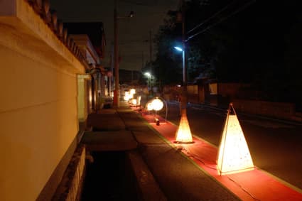 中山道を手づくりの行灯で飾る東近江市五個荘地区の「中山道灯り路」が20日開催された。