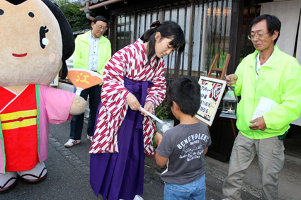 中山道沿いの山本・石塚・北町屋・新堂・三俣・竜田・宮荘・小幡の各町8自治会と五個荘地区まちづくり協議会、五個荘コミュニティセンターが、秋の夜長の観光客を手づくりのイベントでもてなそうと開催。