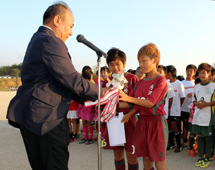 閉会式では、周防清二東近江市サッカー協会副会長から滋賀報知新聞社杯が永源寺JFCに授与され、今大会で輝いた各チーム一人ずつに優秀選手賞が贈られた。