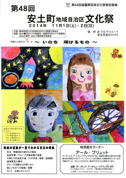 展示会場の安土マリエートでは、近江八幡市文化協会交流出展のコーナーや保・幼稚園児、小・中学生の作品展示、各種サークルやグループ、老人会等の作品紹介、安土まち協しょおけ文化事業「100人キルト」など、幅広い分野の作品が一堂に展示される。