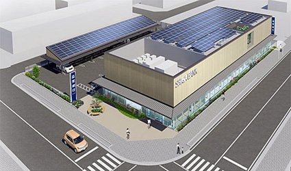 具体的には、LED照明と採光の工夫、さらに琵琶湖から吹く自然風を取り込むことで消費電力を最大限カットするのとあわせて、屋上・駐車場に設置した太陽光パネル(三百六十枚)で年間消費量相当の電力を発電することで、CО2排出量を実質ゼロにする。