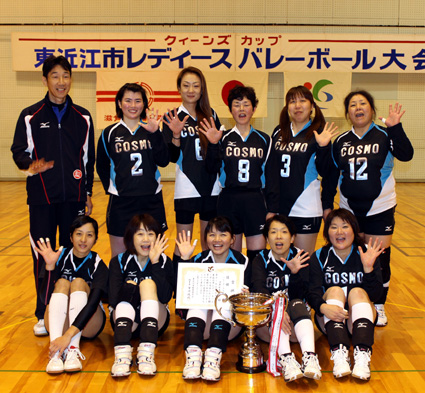 クイーンズカップ第三十九回東近江市レディースバレーボール大会(主催=市教委・滋賀報知新聞社、共催=市バレーボール協会、後援=市体協)が二十三日に布引運動公園体育館で開かれ、バレーボールの部でコスモクラブが五連覇を達成した。ソフトバレーボールの部ではSASUKE華が優勝を果たした。