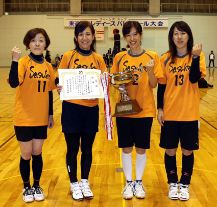 七チームが参加したバレーボールの部の決勝は、前回優勝のコスモクラブと永源寺倶楽部が激突。第一セットは17―16からの連続4得点でコスモクラブがセットを取った。第二セットは永源寺倶楽部が一度17―16と逆転したものの、コスモクラブが最後まで食い下がる永源寺倶楽部を結局21―17で下し、前回に続き一セットも落とすことなく、五連覇を達成した。三位決定戦は玉緒クラブがLieperに2―0で勝ち、敢闘賞を獲得した。