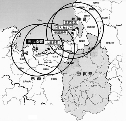 高浜原発の場合、京都府舞鶴市が隣接し、五キロ圏内に入る。滋賀県も、事故に備えて避難計画を策定しなければならない三十キロ圏内に、高島市の一部が入る。このため三日月知事は、事故が発生すれば被害を受ける「被害地元」として京都府などと連携を図りたいとした。