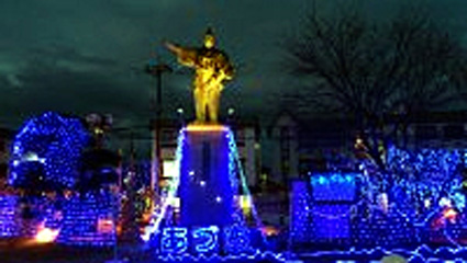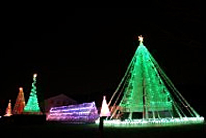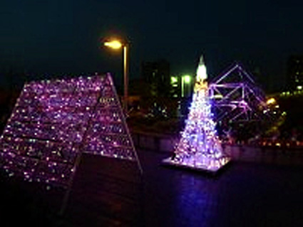 東近江市石塔町のペットボトルを使用した「ペットボトルイルミネーション」は来年一月三日まで、同町・竹の鼻文化センター広場で実施されている。