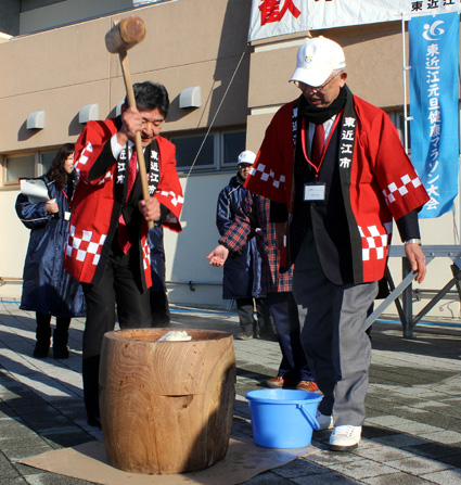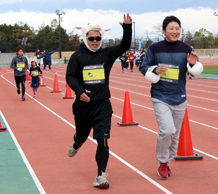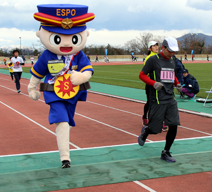 東近江警察署のマスコットキャラクター「エスポ(ESPO)君」もジョギングの部に出場し、“犯罪・事故ゼロ”を訴えながら見事な走りを見せた。ゴールした参加者には、疲れ、冷えた体を温めるぜんざいが振る舞われた。