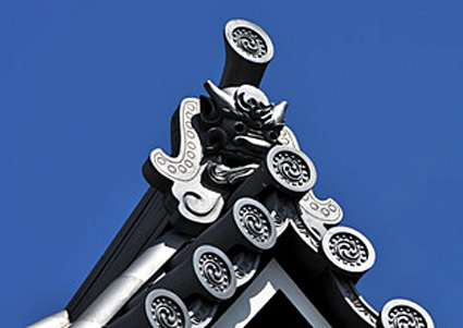 美濃邊鬼瓦工房の「いぶし鬼瓦」=日本に瓦が伝わったのは、今から約千四百三十年前の六世紀末。大津ではこれより少し後の飛島時代につくられた瓦が穴太廃寺から出土している。以来、古代寺院の造営とともに様々な意匠の瓦が大津の地で製作された。江戸時代初期には松本村(大津市松本)が瓦の一大産地として登場した。