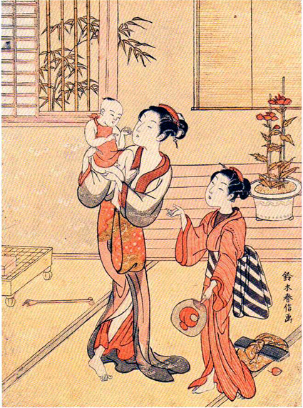 同展では、鈴木春信「夏姿 母と子」、勝川春章「正一位三囲稲荷大明神」、歌川国芳「幼童席書会」などの浮世絵のほか、江戸時代の近江の子どもたちの暮らしや学びの一端をうかがい知ることができる資料もあわせて紹介する。