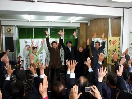 彦根市議選(定数24)は三十二人が立候補し、現職十五人、元職二人、新人七人が当選した。党派別では、自民一人、民主二人、公明二人、共産二人、無所属十七人。当日の有権者数は八万七千五百三十二人で、投票率は五〇・〇五%だった。市議を経て市長を通算三期務めた獅山向洋氏(74)が、市議に返り咲いた。