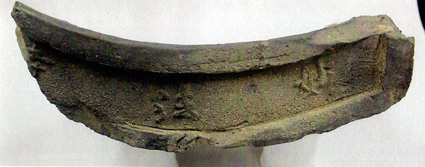 伝本丸南側斜面では、築城時に周辺の寺院から転用されたと考えられる、「妙法寺」銘の軒平瓦などが多く出土した。このことから、秀吉が不安定な情勢を受けて、資材不足を転用で補い、急いで築城した様子がうかがえる。