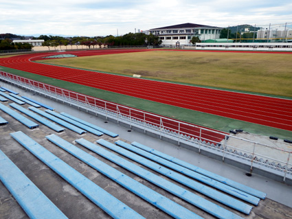 平成三十六年度の国体で主会場となる県立彦根総合運動場(彦根市)の整備計画検討懇話会(有識者十九人で構成)がこのほど開かれ、県は多目的広場を設置する「案1」と、緑の広場を設ける「案2」を示した。
