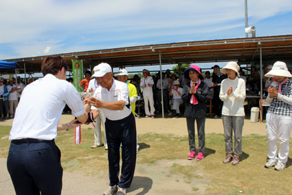 吉田さんは「遠くから参加して優勝でき光栄です。難しい設定だったが、運がよかった」、木下さんは「こんなスコアで上がれると思わなかった。ホールインワンがあったのがよかった」と、それぞれ喜びを語った。