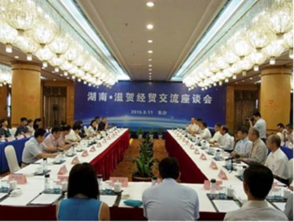 中国の旅行会社である同省旅游局で張値恒局長に滋賀県の観光をアピールし、トップセールスした三日月知事。洞庭湖における瀟湘(しょうしょう)八景にちなんで選定された「近江八景」や、滋賀県には国宝が多いことなどを紹介。湖南省から、大阪、名古屋に直行便が開設されており、これの観光活用を話し合った。