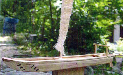 側溝に架けられた踏板には釘穴が彫られ「縫い釘(ぬいくぎ)」が打たれた跡があった。細部の観察の結果、これは板を組み合わせて作った船、すなわち「構造船」の部材の一部と考えられることがわかった。廃船の後、踏み板に転用されたものとみられるという。