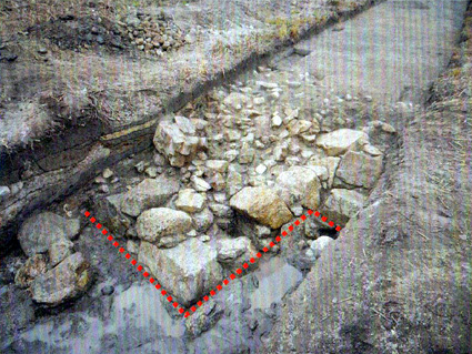 同遺跡は昭和五十八年に実施された発掘調査で、本丸の東端部にある南北方面の石垣の一部が検出されている。