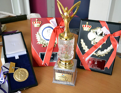 昨年十月、山口県で開催された全日本卓球選手権マスターズの部「女子ハイエイティ」(八五歳以上)で優勝。平成二十五年の鹿児島県大会、二十六年の岩手県大会に続く三連覇を成し遂げた。