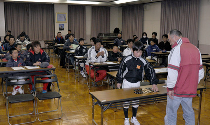 開幕を前に先月二十日、抽選会が池庄町のひばり公園みすまの館で行われ、各チーム主将らが抽選札をひいて一回戦の対戦相手が決まった。