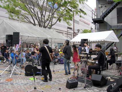 第8回びわこジャズ東近江が23・24日の2日間、「音楽でつながる人と街~東近江」をテーマに、近江鉄道八日市駅前から東近江市役所に延びる駅前グリーンロード一帯の延べ40か所のステージで、延べ200組の大小バンドやゲストミュージシャンがサウンドを響かせた。音楽ファンや市民など訪れた大勢の観客は、自分のお気に入りのミュージシャンを見つけ、それぞれのスタイルで演奏を楽しんでいた。