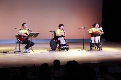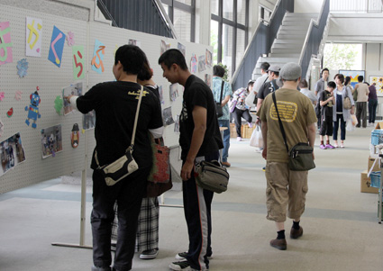 ステージでは養護学校の卒業生やサークル団体など7団体によるバンド演奏やダンスなどが観客と一体となって繰り広げられ、ホワイエでは作品や活動紹介のパネル展示や作業所自主製品の店が人気を集め、屋内外では各種団体や市町福祉課などによるパン、焼きそば、チジミ、から揚げなどの飲食模擬店に長い行列ができた。