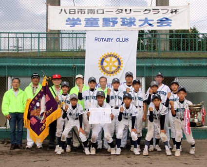 第十四回八日市南ロータリークラブ杯学童軟式野球大会(市教委・滋賀報知新聞社後援)の決勝戦が八日、長山公園グラウンドで行われ、布引ハンターズが永源寺リトルスターズに9―8のサヨナラで勝利し、優勝杯を手にした。