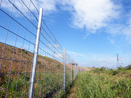 同市正福寺は市役所から北約1キロと、野洲川を挟んで市街地に隣接する地区で、背後に岩根山を抱える。以前は山すその柵でイノシシの侵入を防いでいたが、野洲川沿いに生息地を拡大させるようになったため、正福寺農業委員会は4年前、高さ1メートル、長さ1・4キロにわたる柵を川沿いに設置した。