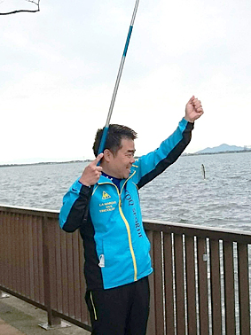 琵琶湖岸や湖上の釣り人の姿は、湖国の初夏の風物詩ともいえます。今は小鮎(コアユ)釣りのシーズン。朝の散歩の途中で湖面を跳ねる鮎を見つけ、私も小鮎釣りに挑戦しました。