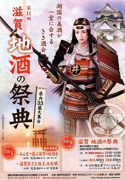 【大津】 県内の全33蔵が集結して第11回「滋賀地酒の祭典」(主催=県酒造組合)が10月1日(第1部)と同9日(第2部、第3部)の2日間、3部構成で開催される。=ポスター参照=