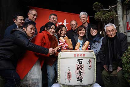 【東近江】 織田信長の焼き討ちで途絶えた幻の銘酒「百済寺樽」が、地域おこし協力隊の比嘉彩夏さん(30)をはじめとするプロジェクトメンバーの手で444年ぶりに復活した。お披露目となった20日、醸造した喜多酒造株式会社(東近江市池田町)で鏡開きが行われ、プロジェクトに携わったオーナーらで祝杯を交わした。