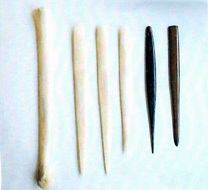 4講座とも、県内から出土した遺物を観察し、現職の発掘調査員から解説を聞いて本物の素材で作ることにチャレンジする。石器づくりでは、サヌカイト(石の種類)を使い、鹿の角や石のハンマーでナイフを作る。骨角器づくりでは、鹿の脚の骨を使った装飾品などを作る。そのほか、石材に穴を開けて勾玉の形を整えたり、草木を染料にしてハンカチを染めたりと、ユニークな内容。
