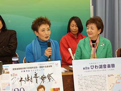 加藤登紀子氏は「昨年実感したことは、琵琶湖と琵琶湖周航の歌が本当に多くの人に愛されているということ。あふれるような広がりを持つ歌であり、歌う人が多ければ多いほど、素晴らしい歌になる可能性を持っていると感じる。今回も充実したプログラムで、また新たな出会いが楽しみ。個人的な生涯の夢としては、本当に琵琶湖周航をしてみたい」と笑顔。