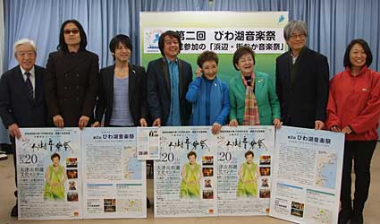 内容は、4月21日に近江舞子(大津市)でプレイベントとして開かれる、シンガーソングライター関島秀樹氏(大津市在住)のコンサートをはじめ、5月19日には平和堂和邇店で、よし笛やバイオリンなどの「街なかコンサート」(入場料無料)、高校生によるストリートライブ(同)などが予定されている。