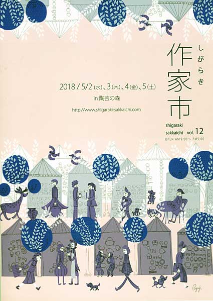 今年で12回目を迎える「しがらき作家市」は5月2日から5日まで、陶芸の森「太陽の広場」(同市信楽町勅旨)で開催される。時間は午前9時から午後5時まで。会場では、陶芸のほか、木工やかばんなどの全国約130人の作家が集まり、展示・即売を行う。