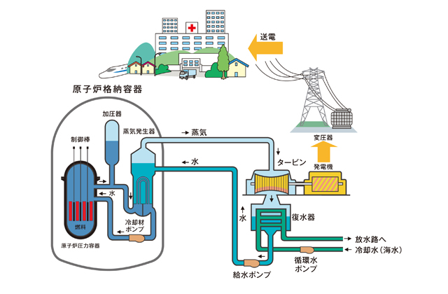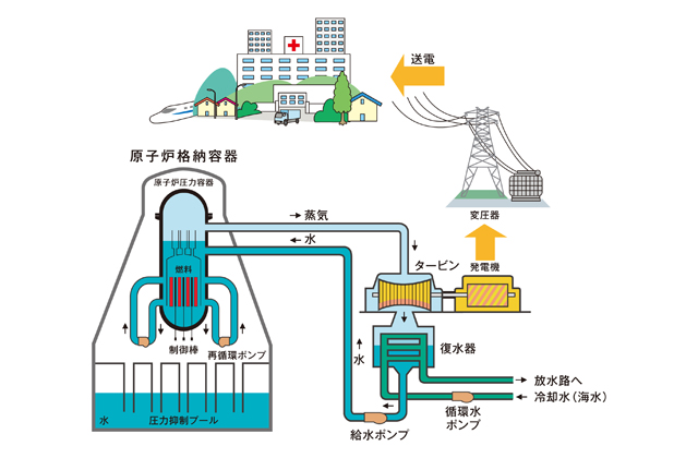 日本の原子炉は「加圧水型軽水炉(PWR)」、「沸騰水型軽水炉(BWR)」の2種類で、東日本にBWR,西日本にPWRが多い。