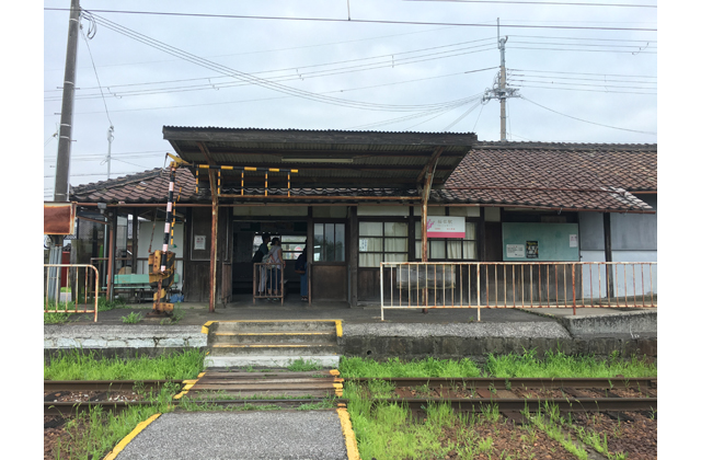 1900年に開業した当時のままの木造レトロ駅舎。桜川の町にはにぎわいもあり、ここを拠点に石塔寺や日野方面へのサイクリングを楽しむのがおすすめ。