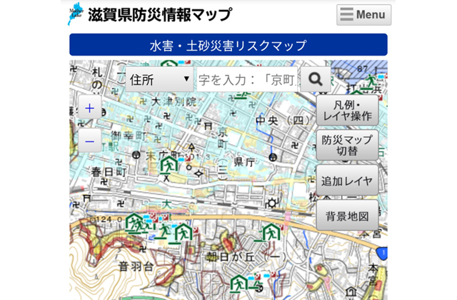 まずは、お住まいの地域や学校、職場など、身の回りに水害・土砂災害のリスクがないか、確認をお願いします。県のホームページに「滋賀県防災情報マップ」を掲載していますので、ぜひご活用ください。