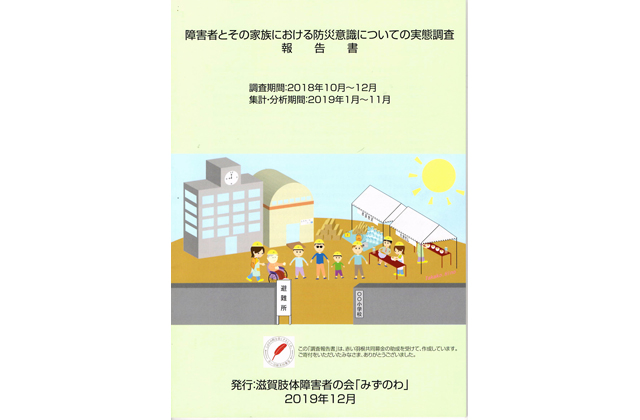 【全県】 滋賀肢体障害者の会「みずのわ」(事務局・草津市渋川1)は、大地震などの災害発生時に、障害者と家族がどのような不安を持ち、どのような課題があるかを明らかにするため、2018年10月~12月にかけて「障害者とその家族における防災意識についての実態調査」を実施し、結果を19年1月~11月にかけて分析、12月に報告書として取りまとめた。