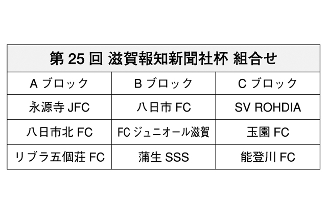 【東近江】 第25回滋賀報知新聞社杯少年サッカー大会(滋賀報知新聞社、一般社団法人東近江市サッカー協会主催、MIOびわこ滋賀協賛)がきょう24日、布引グリーンスタジアム競技場(東近江市芝原町)で開幕する。