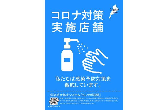 【県】 県では新型コロナウイルス感染症の拡大防止対策として、「県新型コロナ対策パーソナルサポート『もしもの時のサポートシステム(もしサポ滋賀)』」と事業者向けに発行している「感染予防宣言書」を連動させた取り組みを13日から始めた。