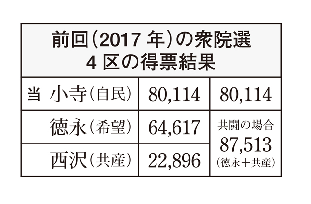 新立憲の徳永氏は、4区で前回2万2000票を得票した共産との協力が欠かせない。